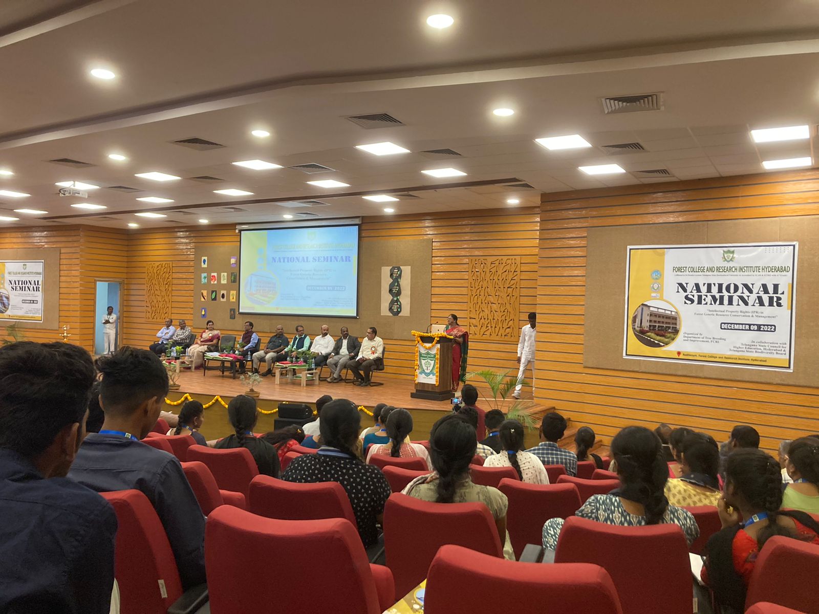 Dr. B. Neeraja Prabhakar, Hon’ble Vice Chancellor graced the programme as chief guest in One Day National Seminar On Intellectual Property Rights In Forest Genetic Resource Conservation And Management, At FCRI, Mulugu on 9-12-2022 and addressed the athering on scenario of forest tree species, endangered forest tree species and importance, role of IPR in protecting the biodiversity.