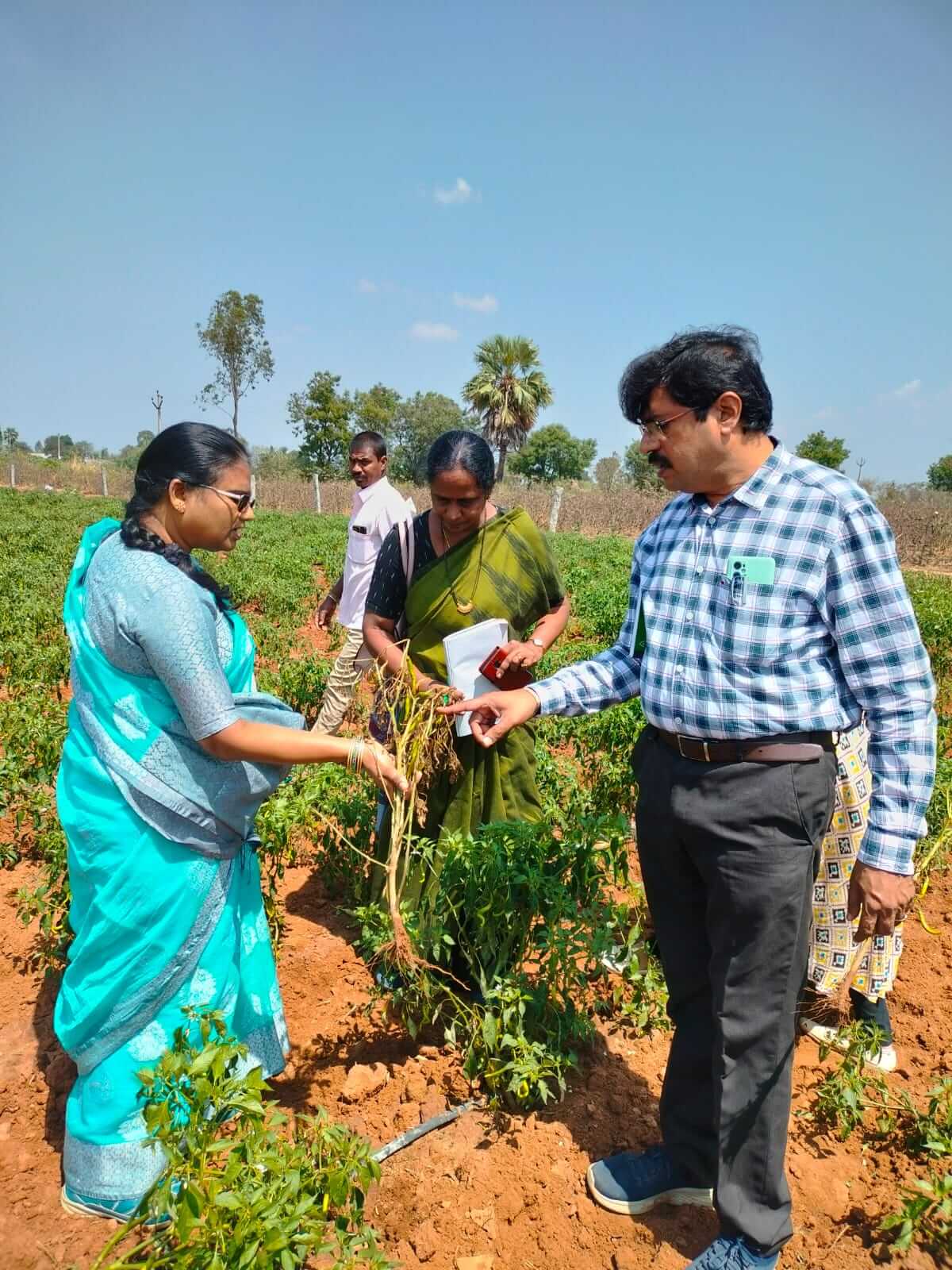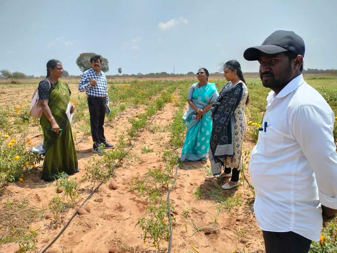 Visit of Hon'ble Vice-Chancellor to "Mango, Chilli, Tomato and Cucumber fields at Thimmapur village, Basvapur village and Munigadapa village of Jagdevpur Mandal, Siddipet District on 24-03-2023 in view of heavy rains and hail storm in Telangana State"